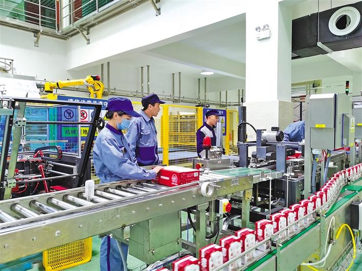 圖為西藏凈土乳業(yè)有限公司牛奶生產(chǎn)線上,工人們正對產(chǎn)品進(jìn)行質(zhì)檢。記者 孫文娟 張尚華 攝