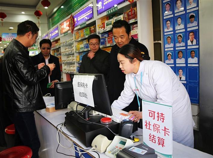 參保市民在藥店刷卡購藥。記者 韓海蘭 攝