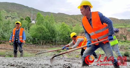 正在緊張施工的拉玉鄉(xiāng)甭唐公路鋪路現(xiàn)場 柴濟東攝
