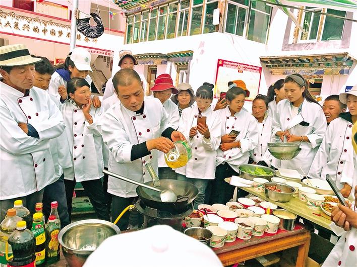 為幫助農(nóng)牧民群眾實(shí)現(xiàn)轉(zhuǎn)移就業(yè),近日,西藏林芝市朗縣舉辦中式烹調(diào)師技能培訓(xùn)班,50余名農(nóng)牧民群眾參加培訓(xùn)。授課老師向?qū)W員傳授了中式家常菜肴的烹飪方法,并對(duì)基本刀工、食材的選用、調(diào)料的搭配、火候的掌握等作了詳細(xì)的介紹。