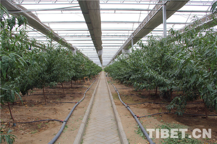 在高原上栽好一棵桃樹需要傾注更多的心血。經(jīng)過大棚的中控室,王榮華說:“這里晝夜溫差大、紫外線強(qiáng),冬天的時(shí)候還要澆凍水、拉膜蓋土、給樹打防凍液,在高原發(fā)展果樹種植困難不少。不同于內(nèi)地的桃樹,在這里快4年了,露天的桃樹只長(zhǎng)高兩三米。”說到這里,他不由感慨科技種植的力量:“大棚里的桃樹一年就長(zhǎng)到3米多高,并且掛果了?;叵?017年時(shí),露天種下的桃樹只有手指粗細(xì),如今長(zhǎng)勢(shì)這么好,真有點(diǎn)不可思議?!?/p>