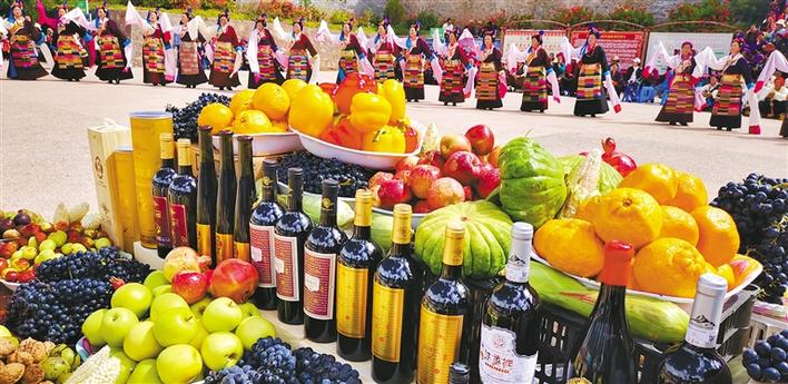 圖為近日西藏自治區(qū)昌都市芒康縣干部群眾歡聚一堂,載歌載舞,慶祝葡萄豐收。記者 桑鄧旺姆 陳志強(qiáng) 攝