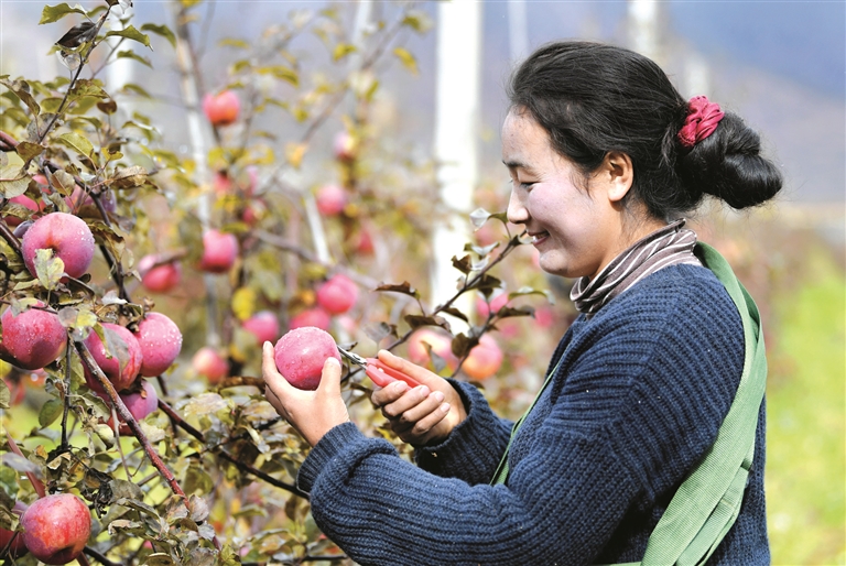 日前,西藏林芝市晚熟蘋果喜獲豐收,當(dāng)?shù)剞r(nóng)牧民在果園忙著采摘蘋果。據(jù)悉,西藏林芝市栽種蘋果約3.78萬(wàn)畝,預(yù)計(jì)全年產(chǎn)量可達(dá)1.5萬(wàn)噸,產(chǎn)值1.7億元。林芝市素有“西藏江南”之稱,是西藏重要的水果生產(chǎn)基地。近年來(lái),林芝市立足高原生態(tài)氣候特點(diǎn),開展蘋果“新品種、新技術(shù)、新模式、新農(nóng)藝”研發(fā)和應(yīng)用推廣,果實(shí)品質(zhì)不斷改良。
