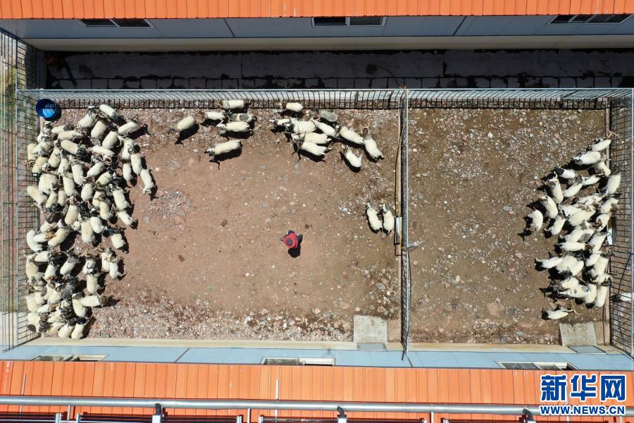 在西藏昌都市貢覺(jué)縣莫洛鎮(zhèn)阿旺綿羊繁育基地,阿果村村民色秋在查看綿羊的生長(zhǎng)情況(5月2日攝,無(wú)人機(jī)照片)。2016年,色秋來(lái)到阿旺綿羊繁育基地打工,很快就學(xué)會(huì)了綿羊的養(yǎng)殖技術(shù),現(xiàn)已成為繁育基地的一把好手,月工資漲到了4400元。新華社記者 詹彥 攝