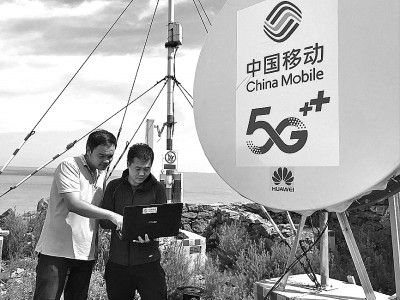 在江蘇灌云縣開山島,中國移動(dòng)工作人員測試5G信號。新華社發(fā)