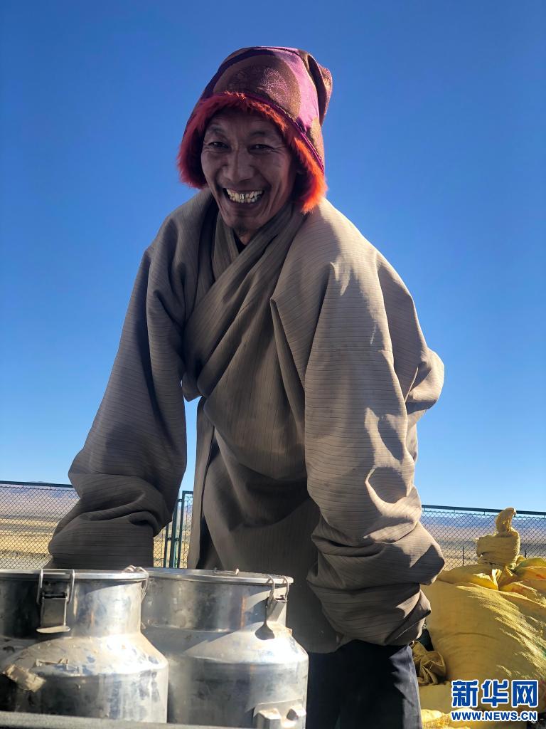 牧民到西藏那曲市嘎爾德生態(tài)畜牧產(chǎn)業(yè)示范基地賣牦牛奶(2020年12月13日攝)新華社記者 金一清 攝。