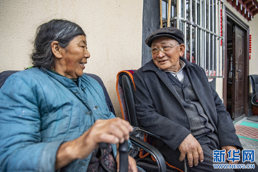 在西藏波密縣易貢鄉(xiāng)貢仲村的家中,波恩(右)和老伴兒聊天(4月1日攝)。新華社記者 孫非 攝