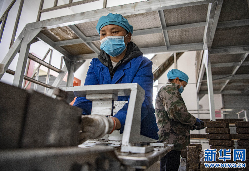 在易貢茶場,工作人員在制作磚茶(4月1日攝)。新華社記者 孫非 攝