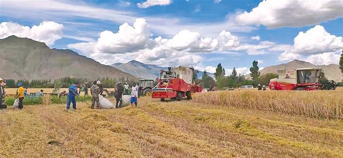 圖為曲水縣曲水鎮(zhèn)茶巴朗村秋收景象。 記者 李梅英 攝
