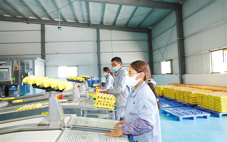 圖為西藏本土農(nóng)產(chǎn)品企業(yè)里工人在包裝藏雞蛋。記者 潘多 攝