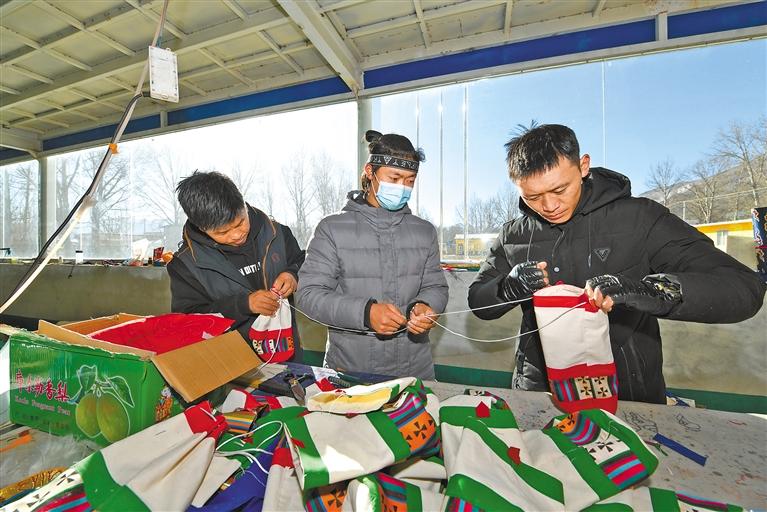 圖為西藏古傳民族手工業(yè)有限公司員工制作手工藝品。