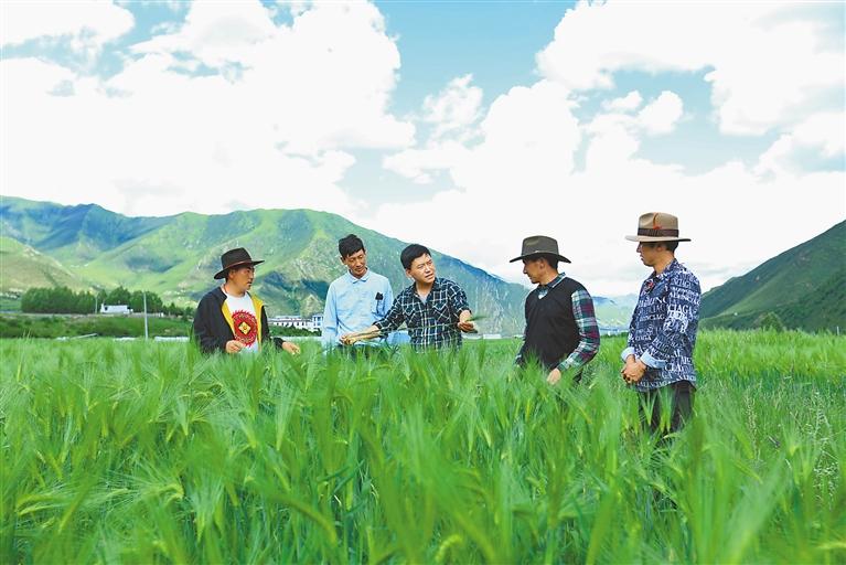 拉薩市農(nóng)業(yè)農(nóng)村局技術(shù)人員深入田間地頭為群眾講解青稞新品種——“蘇拉青2號”種植技術(shù)。[詳細(xì)]