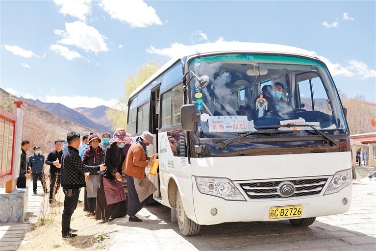 圖為山南市瓊結(jié)縣定時發(fā)車的農(nóng)村客運(yùn)班車,讓群眾出行更方便更安全。