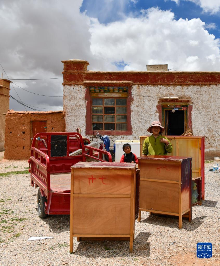 雙湖縣多瑪鄉(xiāng)果根擦曲村村民在打包家具,準(zhǔn)備搬遷(7月12日攝)。新華社記者 周荻瀟 攝