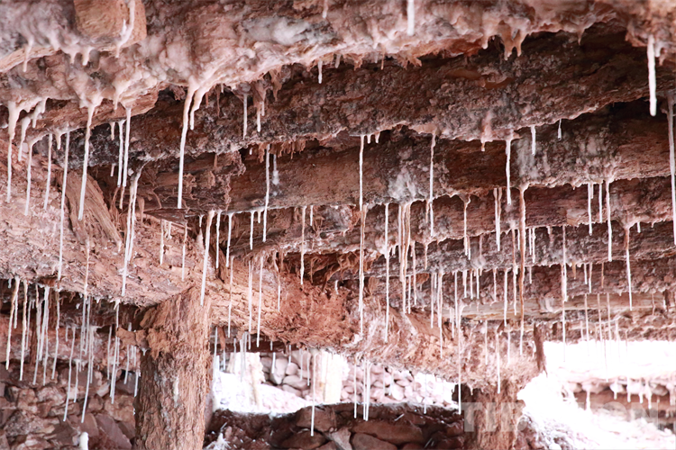 圖為鹽田房內(nèi)頂部到處懸掛的鐘乳晶鹽 陳衛(wèi)國 攝