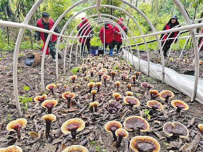 圖為專業(yè)技術(shù)人員指導(dǎo)當(dāng)?shù)厝罕姴烧兹忪`芝。記者 胡文 攝