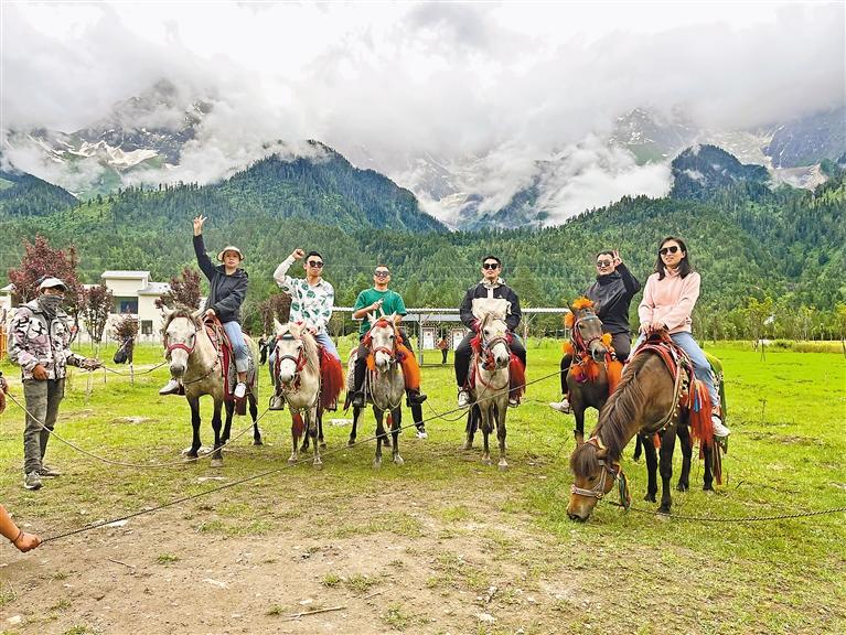 圖為來自廣東的游客在康木村體驗騎馬。記者 張猛 攝