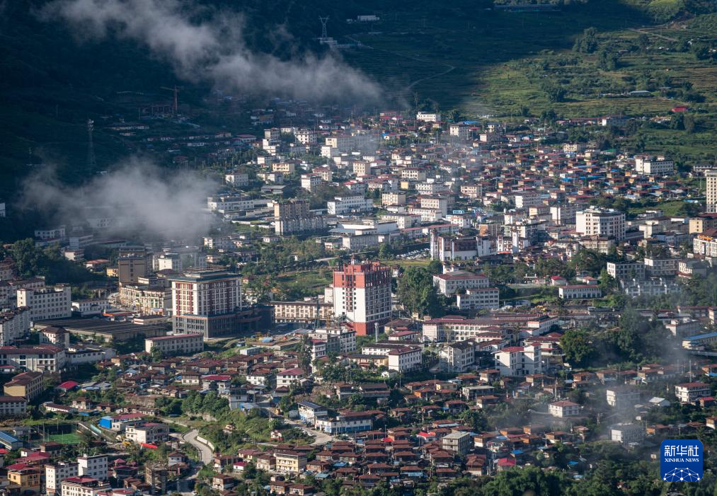 這是墨脫縣城(2023年10月13日攝,無(wú)人機(jī)照片)。新華社記者 孫非 攝
