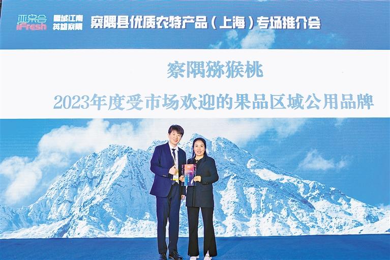 察隅獼猴桃獲得第十六屆iFresh亞洲果蔬產(chǎn)業(yè)博覽會“2023年度受市場歡迎的果品區(qū)域公用品牌”的榮譽。 圖片由記者 謝筱純 王珊 攝