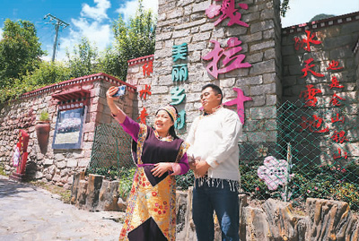 村民巴珍家的藏式小樓,院內(nèi)鮮花簇簇、室內(nèi)溫暖如春,二樓的3個(gè)房間租給旅游企業(yè)用作客房?!耙荒攴孔馐杖胗?萬多元,我在旅游公司打工,月工資4000多元,一年收入七八萬元,關(guān)鍵是工作生活都在自己村里,簡直是太方便了。”巴珍很滿意現(xiàn)在的生活。旦增達(dá)杰介紹,光房屋租金一項(xiàng),村民戶均年增收3萬多元。