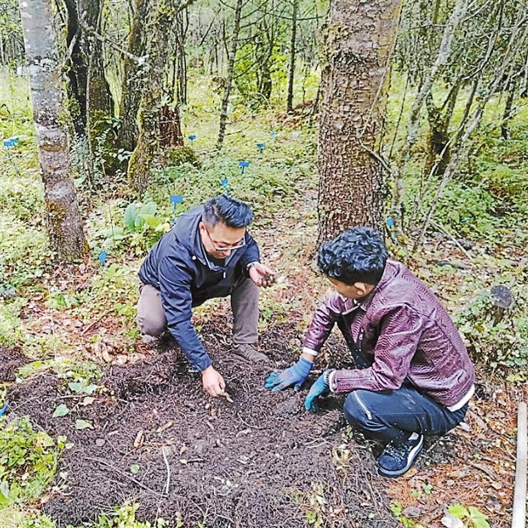 圖為在波密縣扎木鎮(zhèn)康木村天麻種植基地,技術(shù)人員手把手教種植戶天麻種植和采收知識(shí)。 記者 張猛 攝