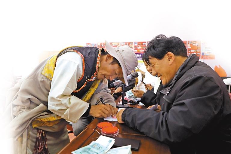 圖為改則縣改則鎮(zhèn)圓夢新居社區(qū)合作社分紅儀式現(xiàn)場。 記者 達(dá)珍 永青 攝