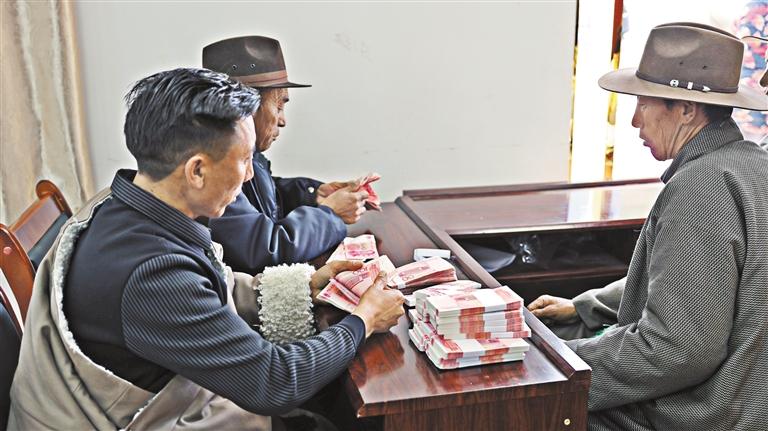 圖為分紅現(xiàn)場。通訊員 普珍 阿珍 益西平措 攝