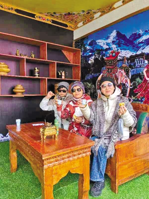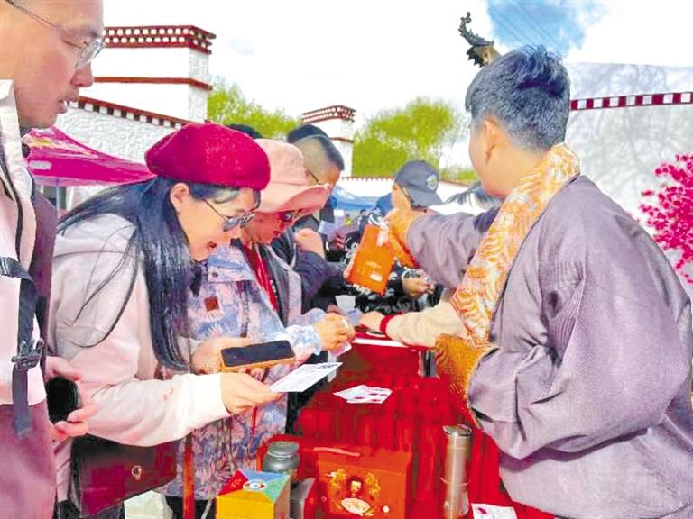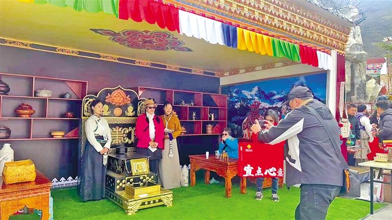 游客在“次仁的家藏式體驗(yàn)館”區(qū)域拍照打卡集章。