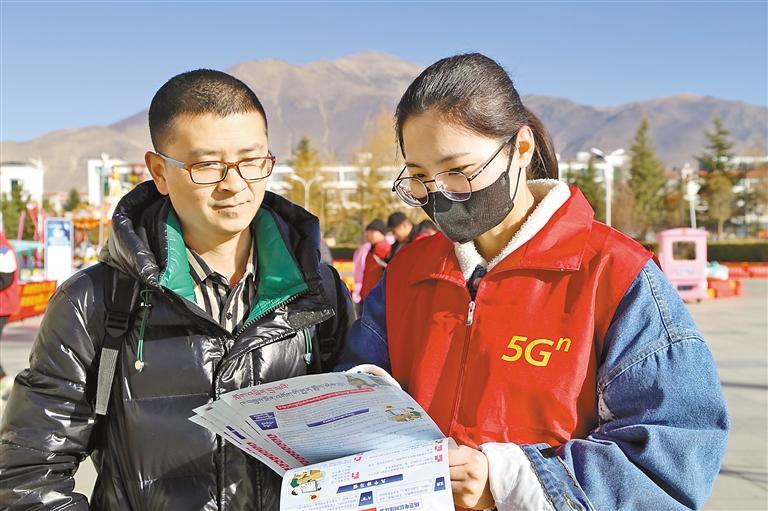 圖為電信、移動、聯(lián)通山南分公司工作人員在山南市體育場開展“文明用網(wǎng) 安全用網(wǎng)”專題宣傳教育活動。 記者 武沛濤 攝