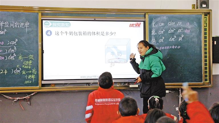 圖為阿里地區(qū)陜西實(shí)驗(yàn)學(xué)校教師利用多媒體平臺為學(xué)生授課。 記者 洛桑旦增 達(dá)珍 永青 攝