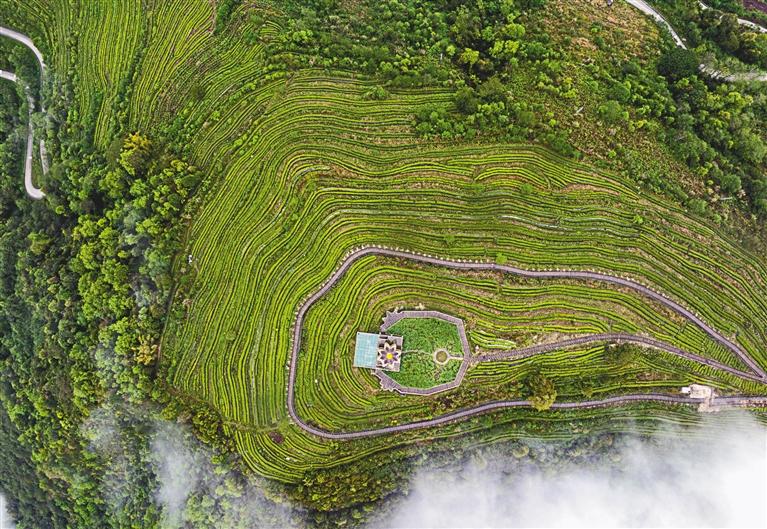 墨脫縣背崩鄉(xiāng)格林村茶園(無人機(jī)照片)。新華社記者 姜帆 攝