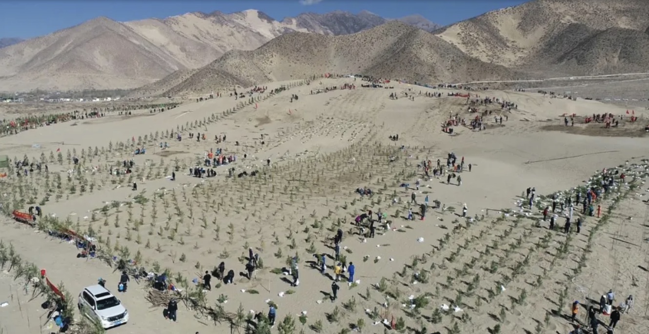 彼時(shí)的雅江中游河畔是一片土地沙化嚴(yán)重、風(fēng)沙肆虐的荒蕪之地。據(jù)原山南地區(qū)林業(yè)局局長李純祿回憶:離江較近的農(nóng)田風(fēng)蝕嚴(yán)重,有的地塊一年要重播兩三次。附近草場沙化嚴(yán)重。有時(shí)沙塵暴卷起的揚(yáng)沙達(dá)數(shù)十米甚至數(shù)百米之高,遮天蔽日,天昏地暗。