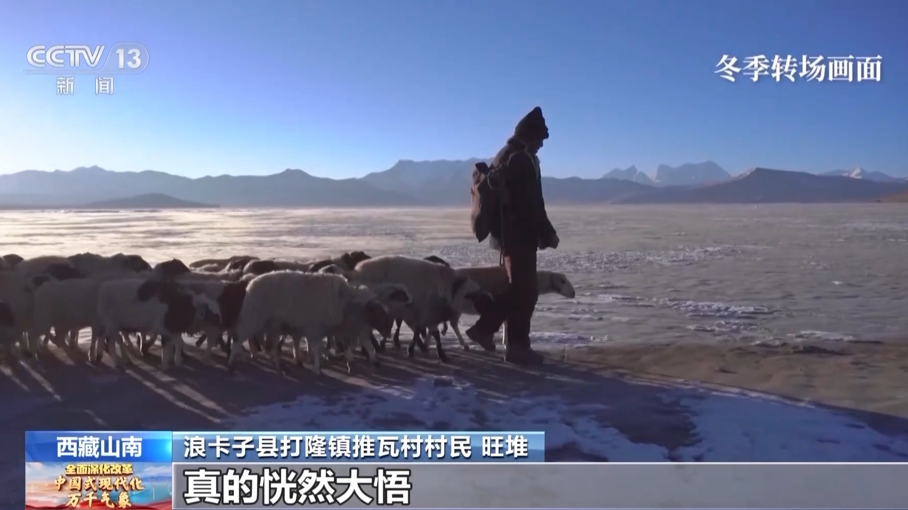旺堆:冬季趕羊轉場的時候,我們在那里待15天左右,晚上島上都是冰面,特別冷,將近-30℃左右,根本不想趕羊,堅決不想干。