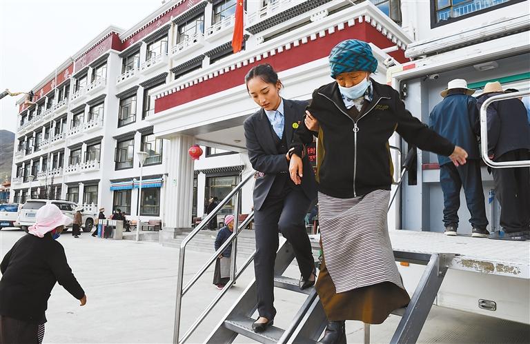 “小心臺階,莫拉(藏語意為‘奶奶’),您是來辦理什么業(yè)務呢?”農(nóng)行山南分行乃東支行的客戶經(jīng)理娜姆措一開口,身邊的社工人員就開始熟練地轉述老人的需求,一經(jīng)詢問才得知流動金融服務車并不是第一次開進供養(yǎng)中心。社會福利院院長邊巴卓瑪向記者介紹:“長期以來,農(nóng)行山南分行乃東支行非常關心特困人員集中供養(yǎng)中心老人的金融服務需求,經(jīng)常以定點定時的方式,到這里為老人現(xiàn)場辦理業(yè)務,宣講金融政策,解答一些個人資金安全方面的問題,為老人提供非常方便、專業(yè)的金融服務?!?/p>