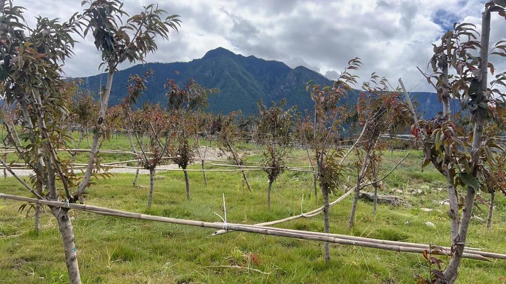 9月6日,在西藏林芝市巴宜區(qū)林芝鎮(zhèn)嘎拉村村外的同一片河灘上,植被覆蓋黃沙,桃樹枝葉漸長。(尼瑪曲吉 攝)