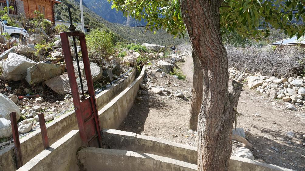 當?shù)毓喔人词茄┥饺谒D嵛萼l(xiāng)農(nóng)牧綜合服務中心主任扎西次旺介紹,高標準農(nóng)田建設前,鄉(xiāng)民一直沿用先民修的老水渠。