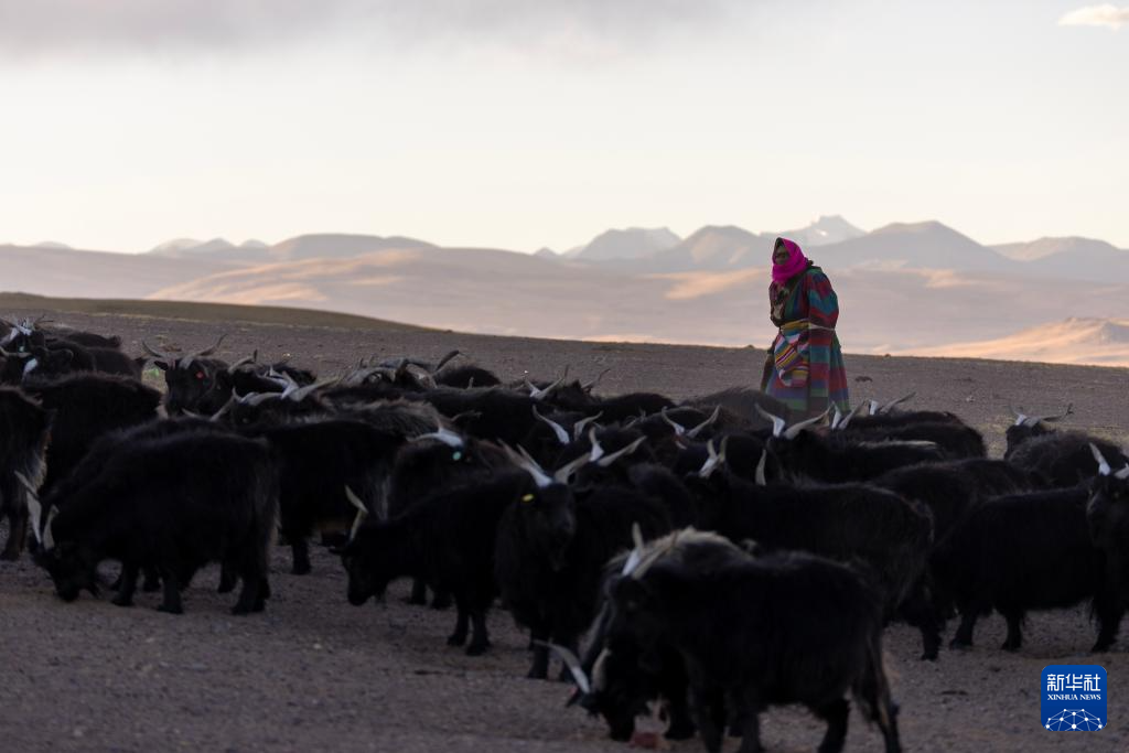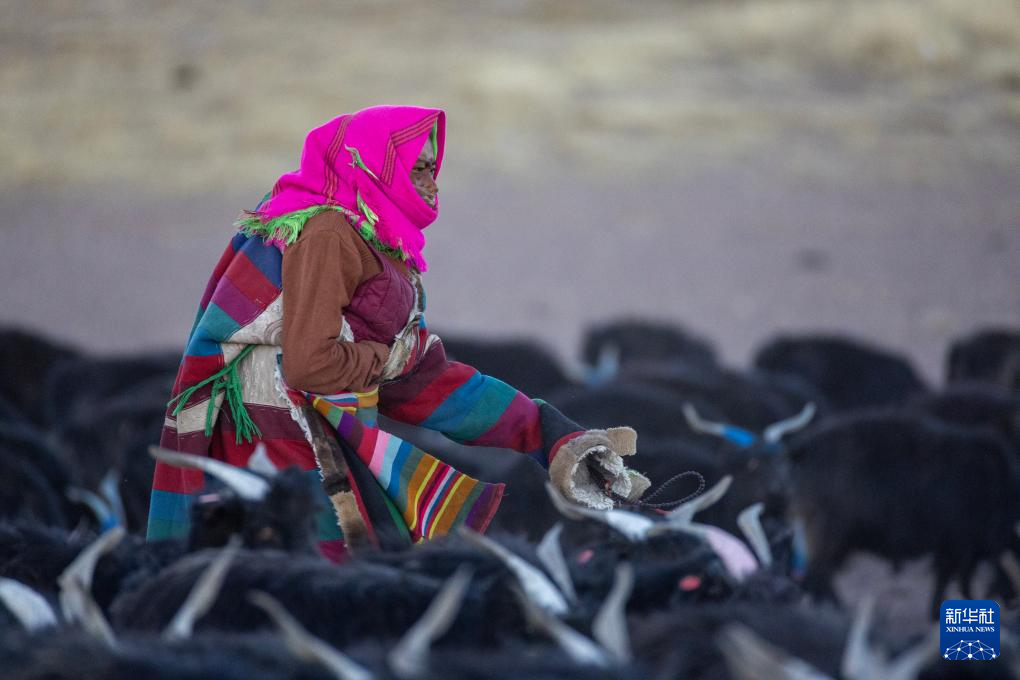 措勤縣紫絨山羊原種場的一位牧工在照看優(yōu)質種羊群(11月20日攝)。新華社記者 姜帆 攝