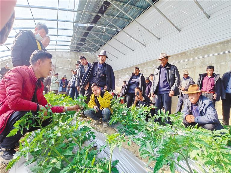 圖為蔬菜種植培訓班上,學員交流種植心得。記者 扎西頓珠 攝