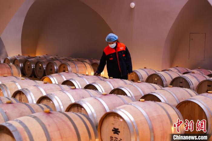 1近年來,芒康縣將葡萄酒產(chǎn)業(yè)作為重點(diǎn)特色產(chǎn)業(yè),葡萄酒企業(yè)正如雨后春筍般涌現(xiàn),葡萄種植業(yè)已成為當(dāng)?shù)孛癖娫鍪罩赂坏闹匾緩?。圖為工作人員在橡木桶貯藏區(qū)檢查。中新社記者 薛蒂 攝