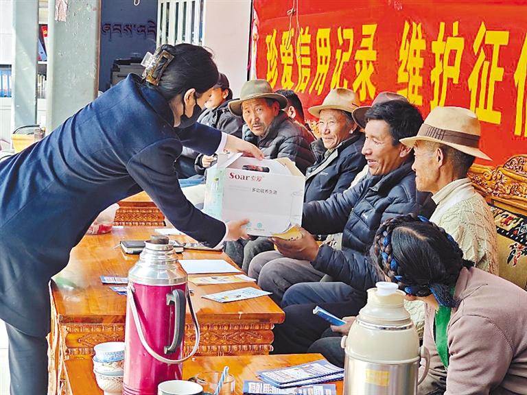 圖為農(nóng)行日喀則分行工作人員在基層開展征信宣傳及貸前信息采集工作。記者 扎西頓珠 攝