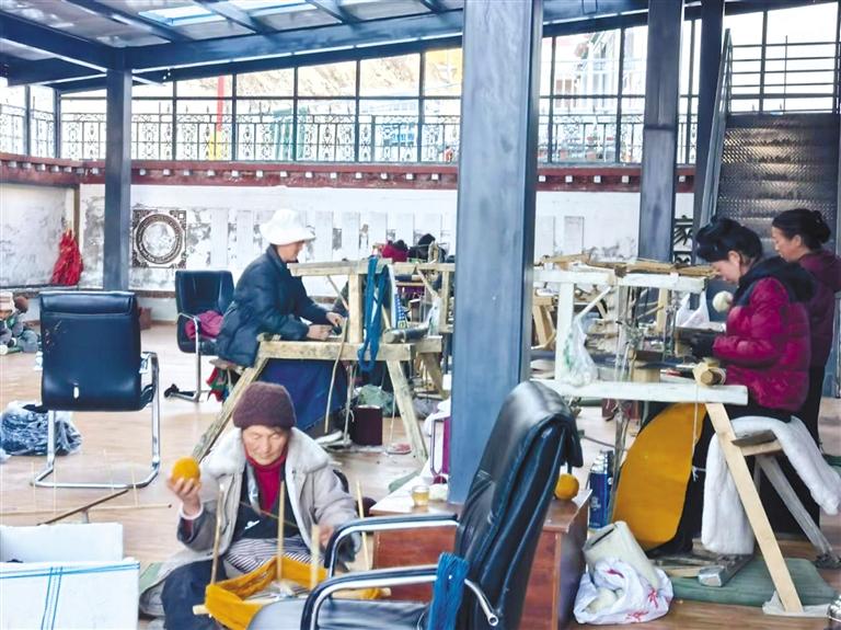 冬日里,走進(jìn)林芝市朗縣登木鄉(xiāng)如字村齊功巾幗民族手工藝傳承加工合作社,織布機(jī)工作的聲音此起彼伏,現(xiàn)場一片繁忙景象。