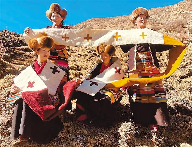 合作社女工展示編織好的藏式手工藝品。文/圖 記者 劉楓 王珊 通訊員 洛松江澤