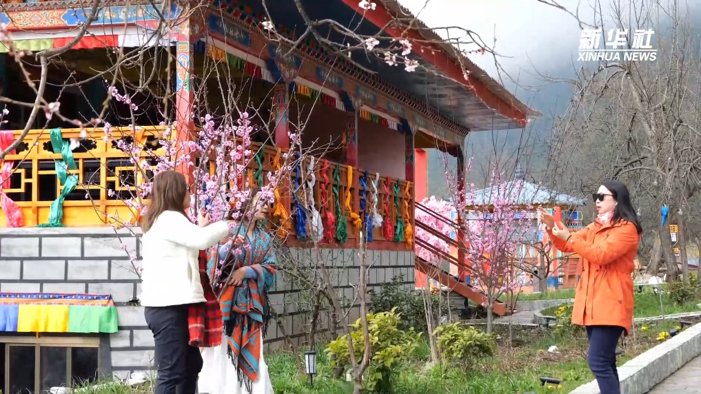 西藏林芝市波密縣嘎朗村村民扎珠說,以前不會太關(guān)注當(dāng)?shù)氐奶一?,后來開始舉辦桃花節(jié)了,因?yàn)樘一?,越來越多的游客來這里旅游,也因?yàn)樘一ù謇镩_了越來越多的民宿和餐館。