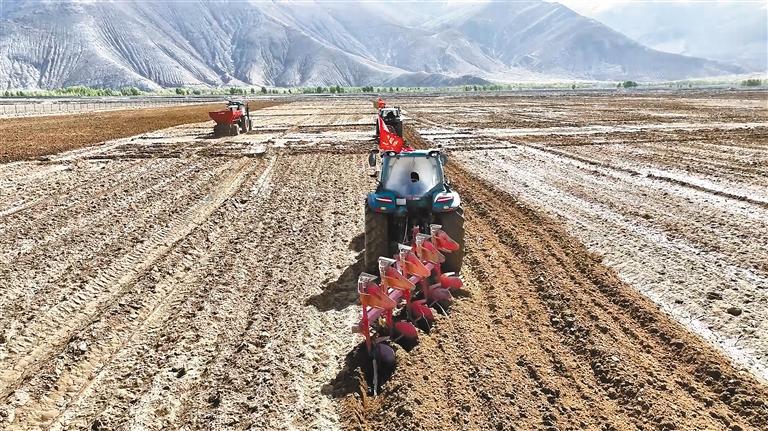 圖為播種機在田間作業(yè)。記者 旦增嘎瓦 攝