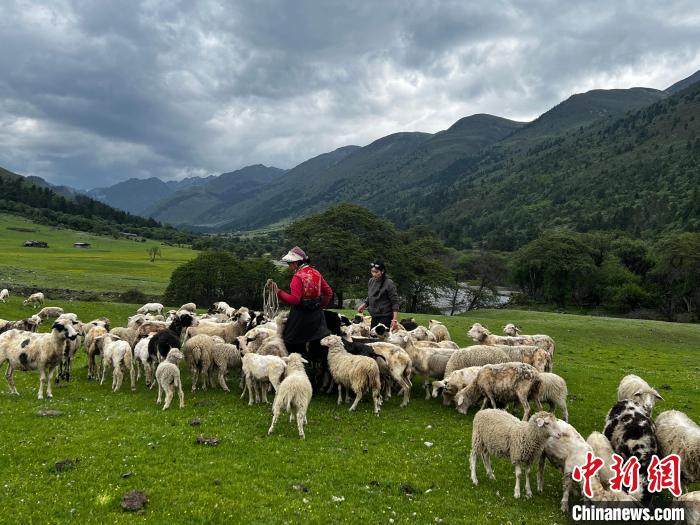 央宗措姆與媽媽七林央宗在星沾牧場照看綿羊。時(shí)文枝 攝