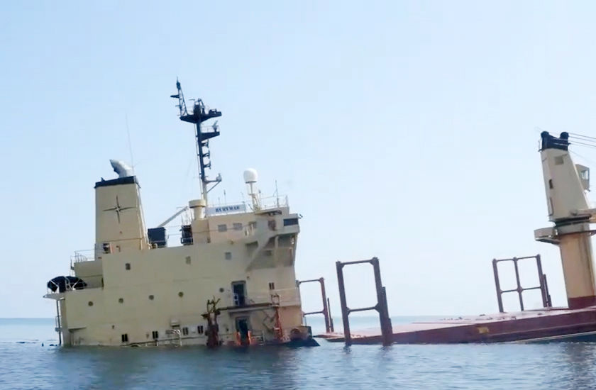 2月18日,胡塞武裝用導(dǎo)彈襲擊了在亞丁灣行駛的“魯比馬爾”號(hào),致該船嚴(yán)重?fù)p壞,船員被迫撤離。在此后的12天里,這艘載有數(shù)萬(wàn)噸化肥和大量燃油的貨輪一直錨泊在也門(mén)附近海域,并緩慢進(jìn)水。泄漏的燃油在海面上形成長(zhǎng)達(dá)30公里的油帶。3月1日,也門(mén)附近海域出現(xiàn)惡劣天氣,“魯比馬爾”號(hào)最終沉沒(méi)。
