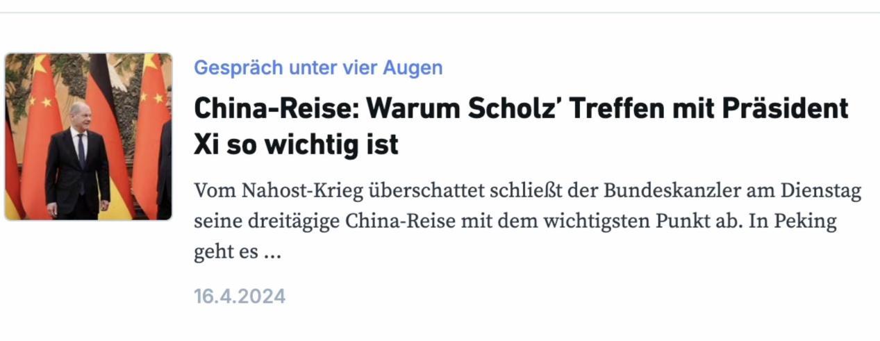 △德國網(wǎng)絡(luò)編輯部(RND)網(wǎng)站發(fā)布朔爾茨訪華的評論文章