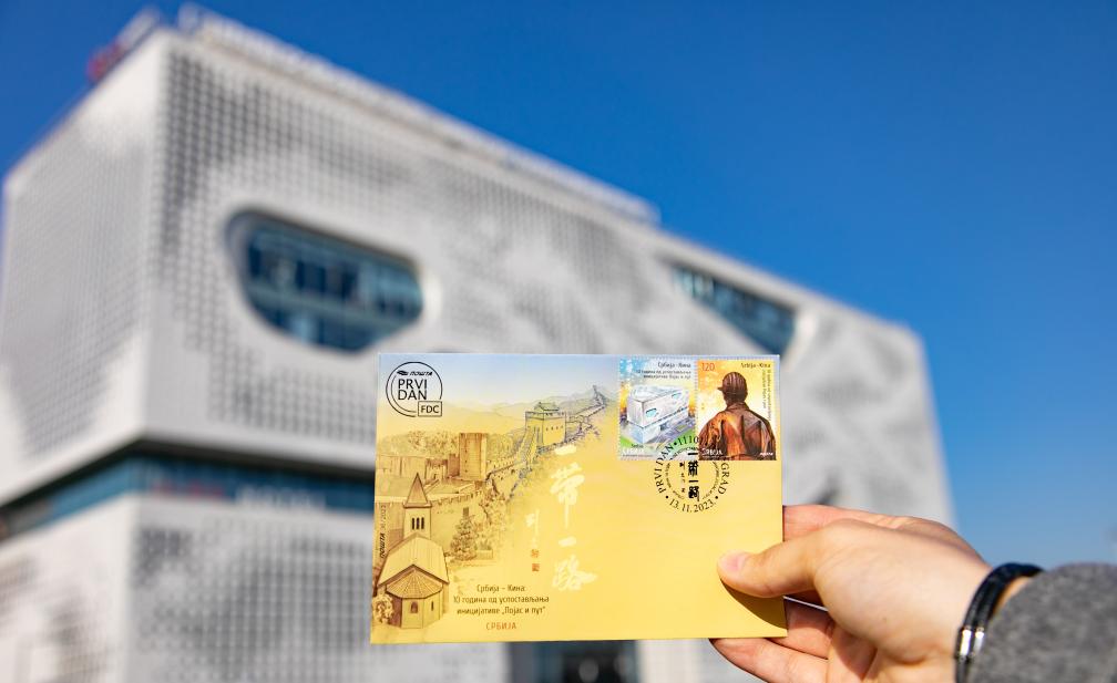 2023年12月28日,塞爾維亞郵政局在貝爾格萊德中國文化中心發(fā)行兩套中國主題郵票,紀念“一帶一路”倡議提出十周年,同時展示中國的文化與自然遺產(chǎn)。圖為當(dāng)天在貝爾格萊德拍攝的中國主題郵票。新華社發(fā)(王韡攝)