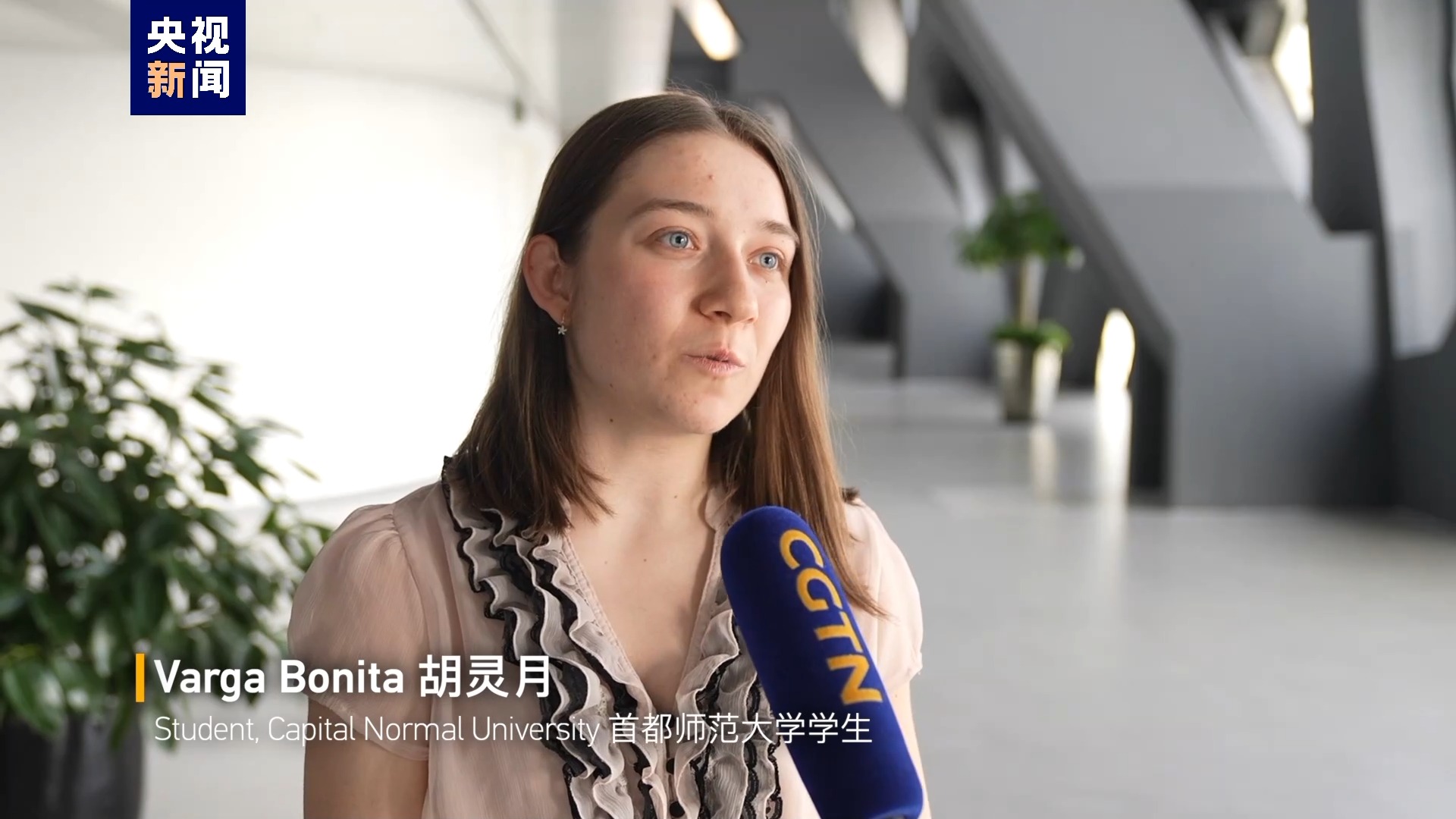 首都師范大學(xué)學(xué)生 瓦爾加·博尼塔 (又名 胡靈月):(這是)我和宋智孝第二次獲得大使獎學(xué)金。 我們對此感到非常高興和興奮。 我們想分享我們的喜悅。所以,我們給習(xí)近平主席寫了一封信。