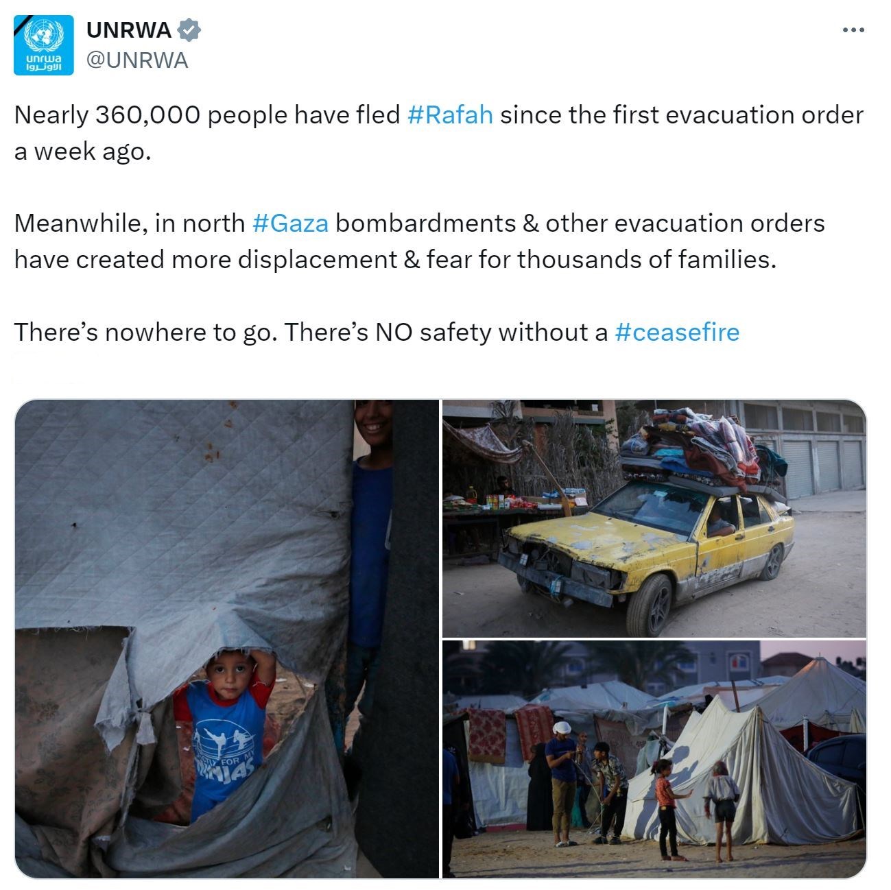 △聯合國近東救濟工程處13日通過社交媒體發(fā)表聲明稱,迫于以色列政府持續(xù)發(fā)布的強制疏散令,過去一周約有36萬巴勒斯坦平民撤出拉法,其中大多數人已經在加沙境內經歷多次顛沛流離。